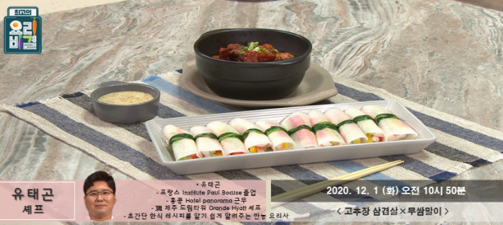 (최고의요리비결)유태곤 고추장삼겹살 레시피 무쌈말이 만드는법