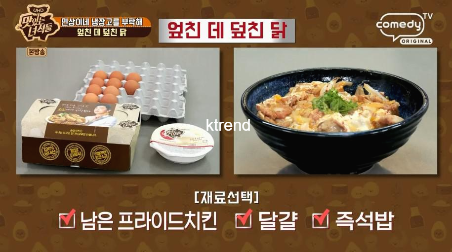 맛있는녀석들 치킨덮밥 정호영셰프 레시피 먹다남은 프라이드치킨 활용 엎친데덮친닭 민상이네냉장고를부탁해 게맛살에그프레소고구마크로켓 그라탱크림짬뽕프렌치토스트 313회 0219